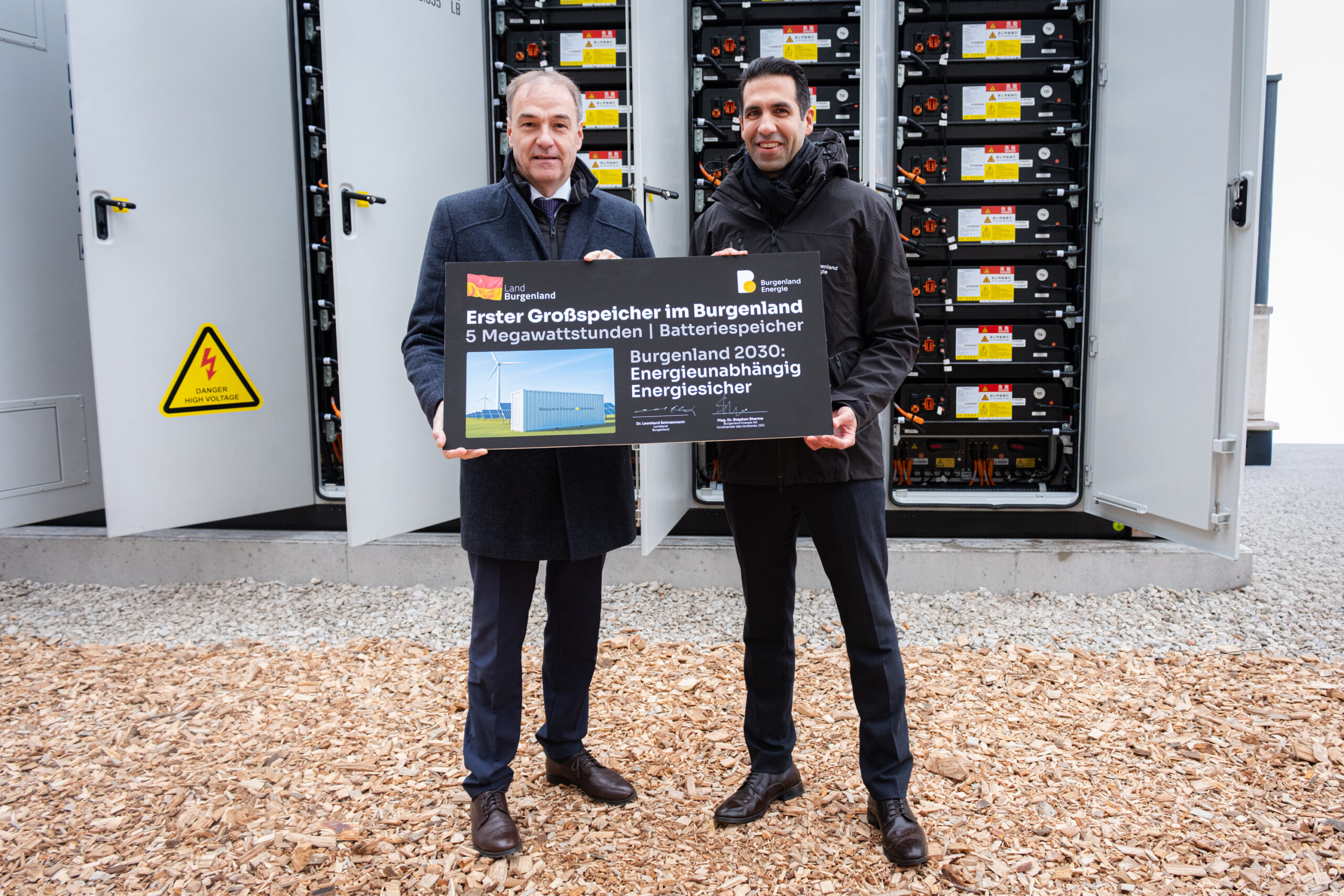 „Heute ist ein historischer Tag für die Energieversorgung des Burgenlands. Der erste große Stromspeicher ist im Burgenland angekommen. Damit befindet sich nach Wind und Photovoltaik die dritte Säule unserer Energieunabhängigkeit, die Stromspeicher, voll im Ausbau“, so Landesrat Leonhard Schneemann und CEO der Burgenland Energie Stephan Sharma am Montag in Siegendorf.