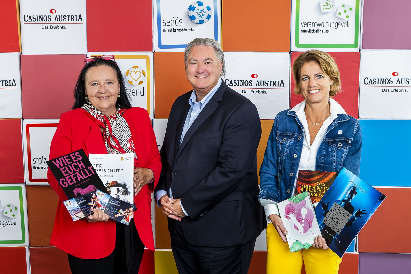 Doris Kiefhaber (l) und Martina Löwe (r), Geschäftsführerinnen der Österreichischen Krebshilfe, mit Casinos Austria Generaldirektor Erwin van Lambaart © Achim Bieniek