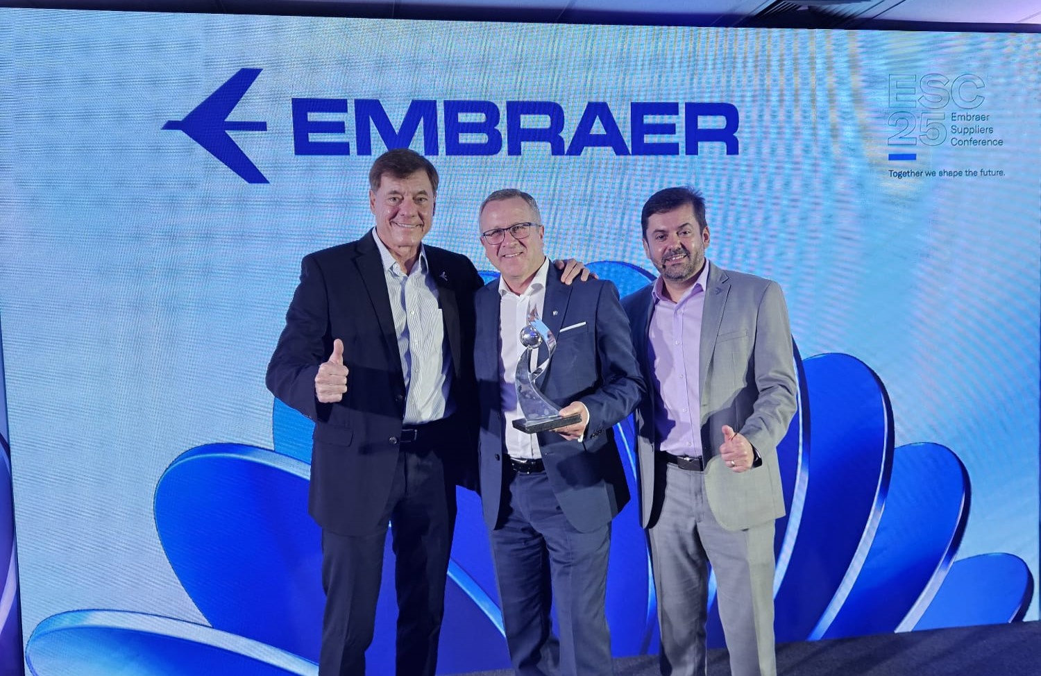 Der brasilianische Flugzeughersteller Embraer zählt zu den Top-3-Kunden der FACC. Beide Unternehmen blicken auf eine mehr als 20-jährige erfolgreiche Zusammenarbeit zurück, seit 2024 ist FACC auch Mitglied im Supplier Advisory Council des weltweit drittgrößten Flugzeugherstellers. Während der jährlich stattfindenden Supplier Conference in São Paulo wurde die FACC heute mit dem Supplier of the Year Award in der Kategorie „Outstanding Collaboration“ ausgezeichnet und die erfolgreiche Partnerschaft damit weiter ausgebaut. Die Auszeichnung wurde von Roberto Chaves – Executive Vice-President of Global Procurement and Supply Chain bei Embraer – an CEO Robert Machtlinger überreicht.