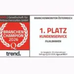 Branchen-Champion 2026: bank99 bei Kundenservice erneut auf Platz 1
